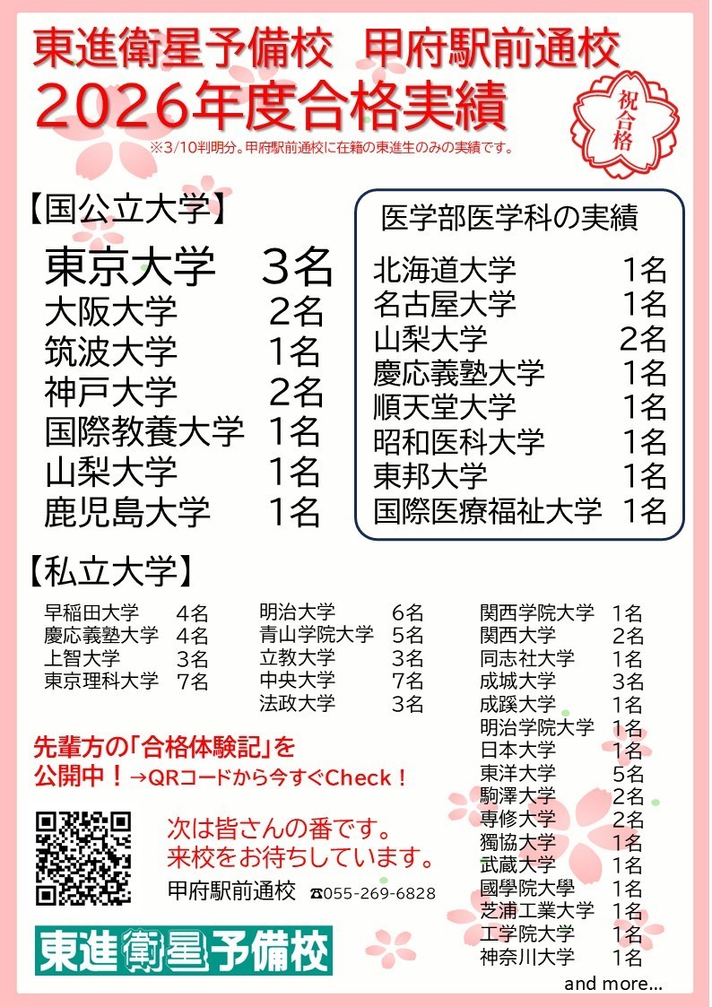 甲府駅前通校は「元気なひとに結果はついてくる」をモットーに、明るく元気よく、時に厳しい校舎づくりを目指します。